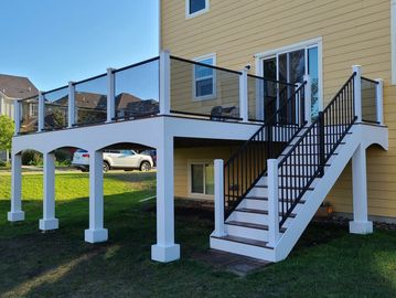 This option is heavily recommended to those with walk out basement doors under their deck or to those that have enough height under their deck for additional patio space below.