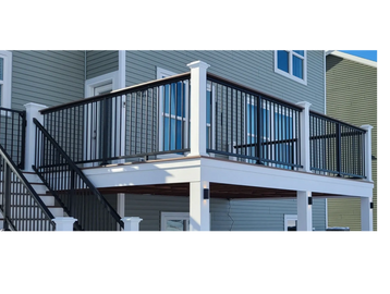 Aluminum railing is a great maintenance free option for railing. We offer products by Timber Tech, Westbury, Afco, and Kadenz; all of these rail manufacturers have different styles. They offer in range from standard spindled aluminum railings to cable and glass railings as well, all with different profiles and color options that can be mixed and matched. These railings can all also be used in conjunction with our lighting packages.
