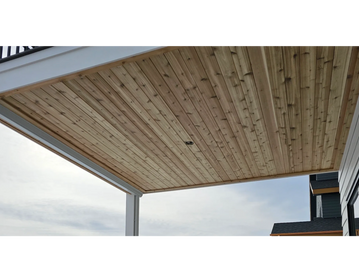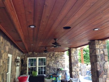 With the use of our water diversion systems, the frame work of your deck is still visible from below. For those that will be spending a lot of time utilizing their space under the deck, we recommend covering the framing with a finish product like Natural Cedar or PVC tongue and groove . This finished ceiling really provides a more refined feel to your outdoor living space and it can be enjoyed even in the rain.